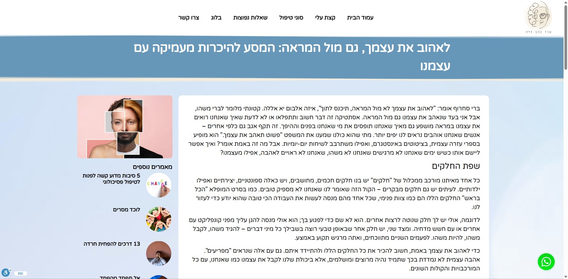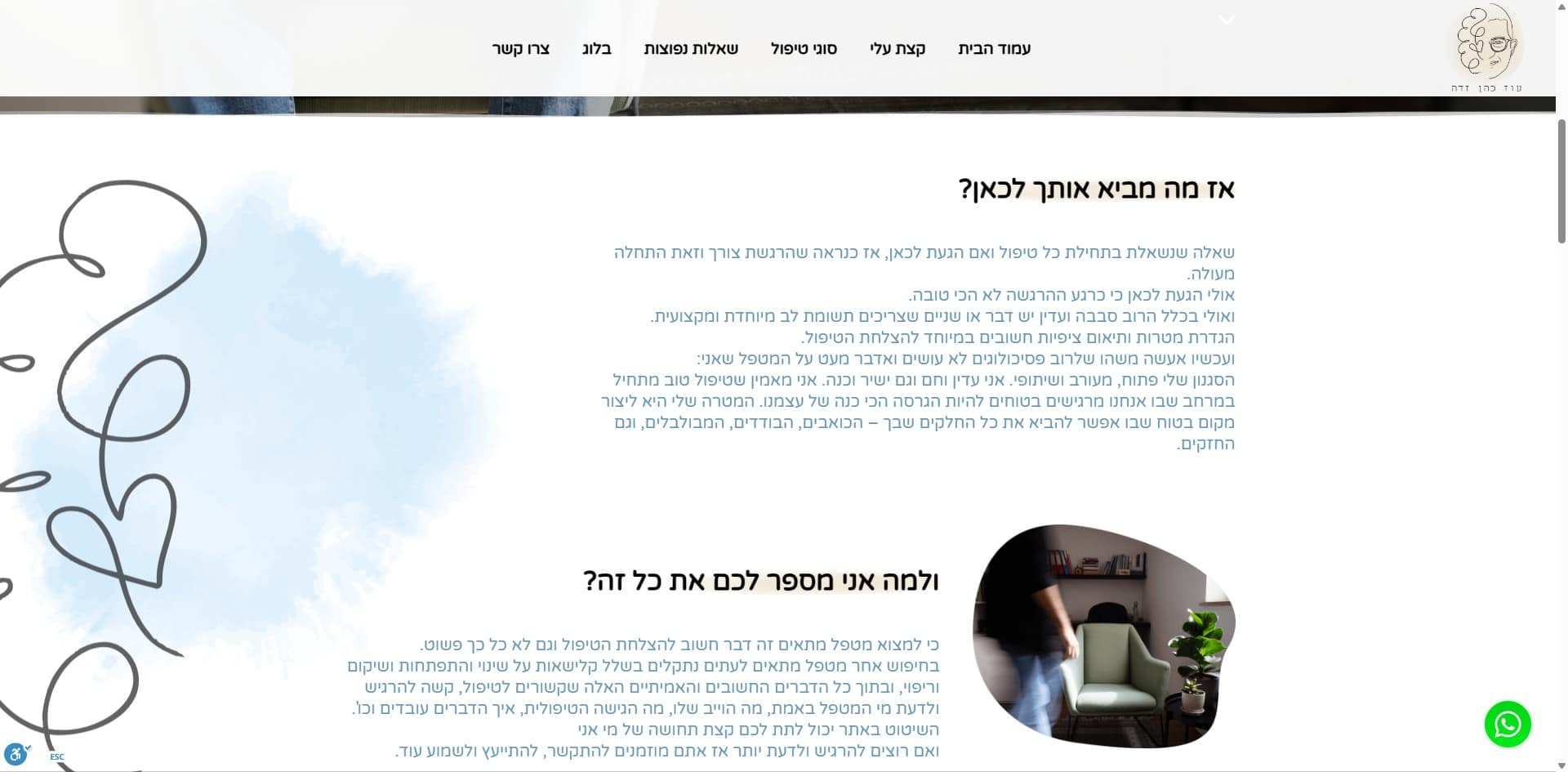 האתר של עוז זדה נבנה מתוך הבנה שהמפגש הראשון בטיפול מתחיל הרבה לפני הקליניקה. יצרנו חוויית דיגיטל שקטה, נקייה ומכבדת, שמדגישה נוכחות מקצועית, הקשבה ואנושיות. בתהליך העבודה שמנו דגש על כתיבה רגישה ומדויקת, לצד עיצוב מאוזן שמאפשר למבקר להרגיש בטוח, מובן ולא מוצף. האתר מציג את הגישה הטיפולית, תחומי ההתמחות והאדם שמאחורי המקצוע — בצורה שמזמינה פנייה, בקצב הנכון ובגובה העיניים.